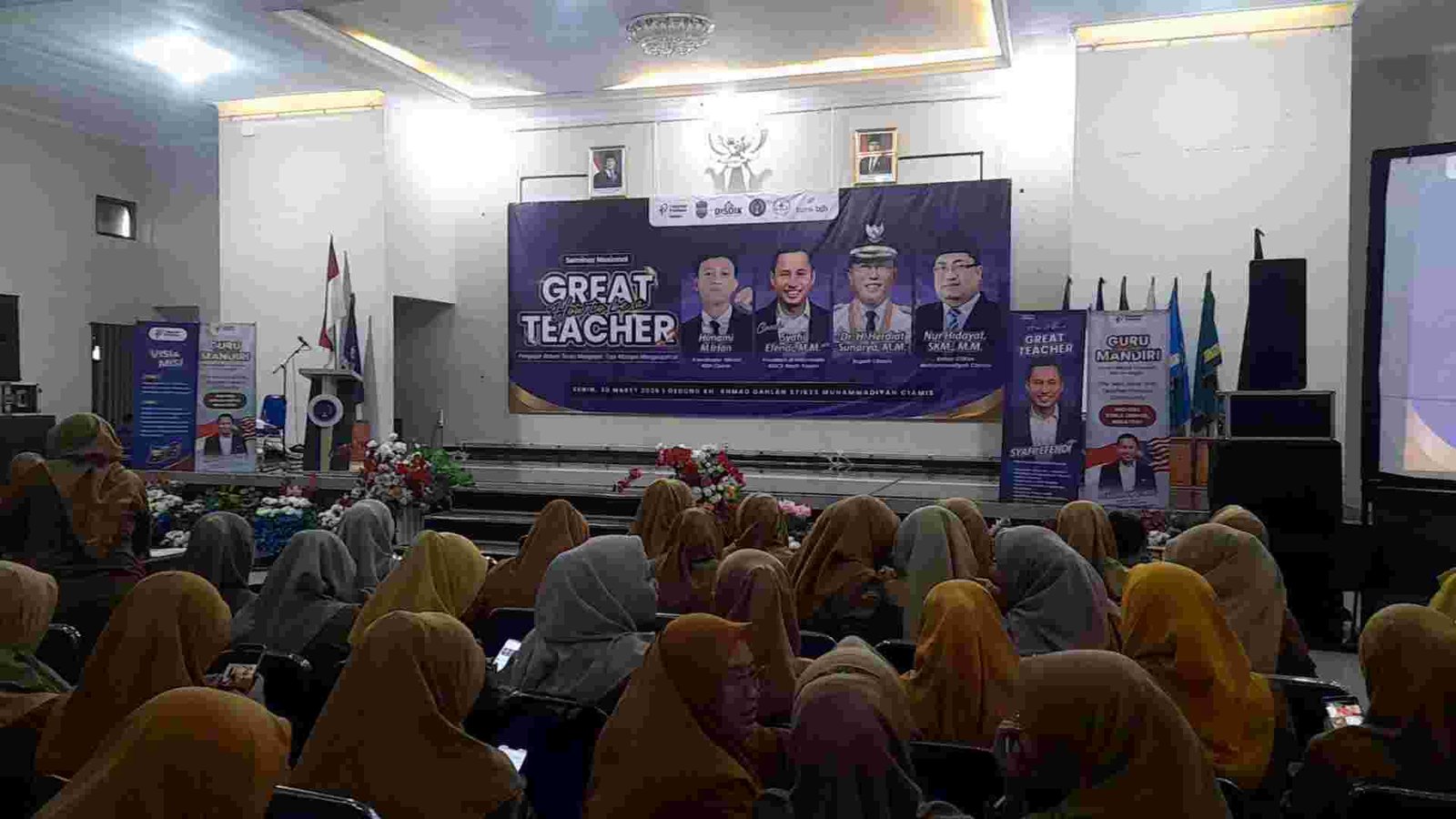 CIAMIS, AMNN.CO.ID — Ribuan tenaga pendidik dari berbagai jenjang mengikuti Seminar Nasional How To Be A Great Teacher yang digelar di Gedung KH Ahmad Dahlan Ciamis, Senin (30/3/2026). Kegiatan yang diinisiasi oleh Teacher Preneur Nusantara ini mengangkat tema “Pengajar Belum Tentu Mengajar, Tapi Menginspirasi”.