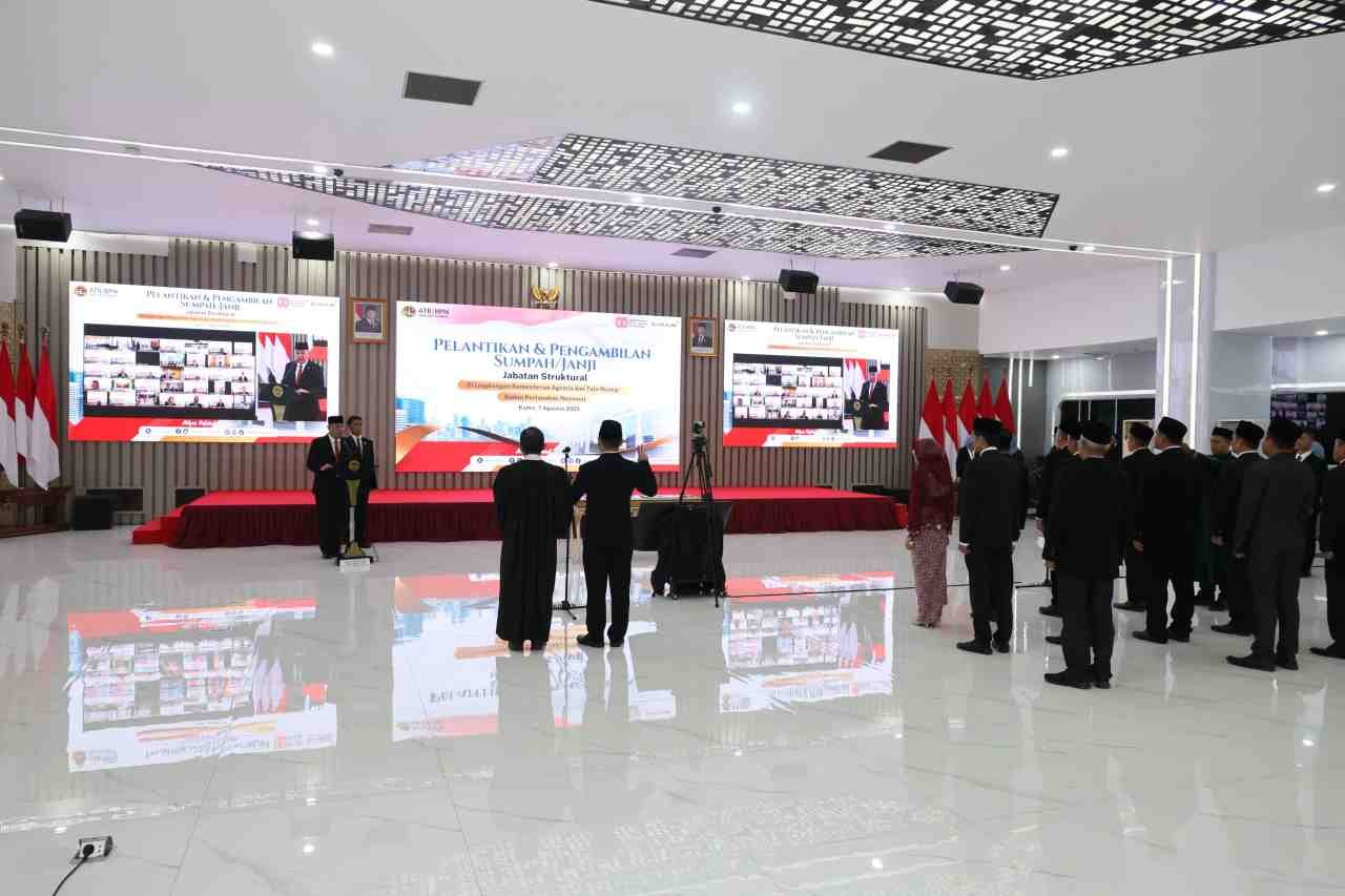 Jakarta, AMNN.co.id – Wakil Menteri Agraria dan Tata Ruang/Wakil Kepala Badan Pertanahan Nasional (Wamen ATR/Waka BPN), Ossy Dermawan, melantik sejumlah Pejabat Administrator dan Pengawas di Aula Prona, Jakarta, Kamis (7/8/2025). Pelantikan ini juga dilakukan secara serentak di 20 provinsi.